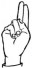 На ћирилици написано МИЛОМИРА ТОПАЛОВИЋ састоји се из 17 слова [?]. Исписано ћириличном једноручном азбуком за глувонеме:
